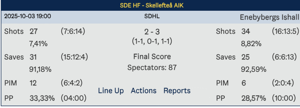 Under söndagen var det åter dags för match. Dock inte i Enebybergs Ishall utan i Vilundaparkens Ishall i Väsby, då Luleå var på besök.