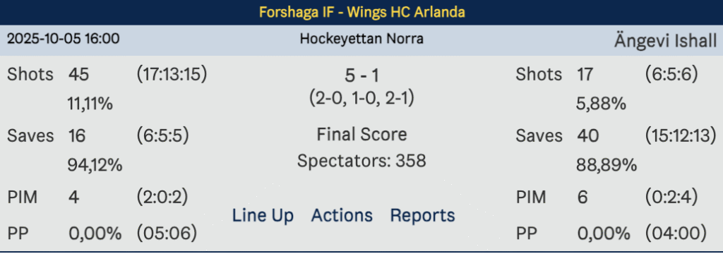 Men var direkt chanslösa mot Forshaga IF några dagar senare. Värmlandsgänget kopplade greppet om tillställningen och hade 3–0 efter två spelade perioder.