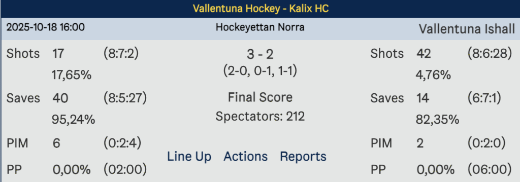 Under fredagen var Kiruna på besök. Och det blev inte alls som Vallentuna räknade med. En bra första period, där gästerna hade en 1–0-ledning.